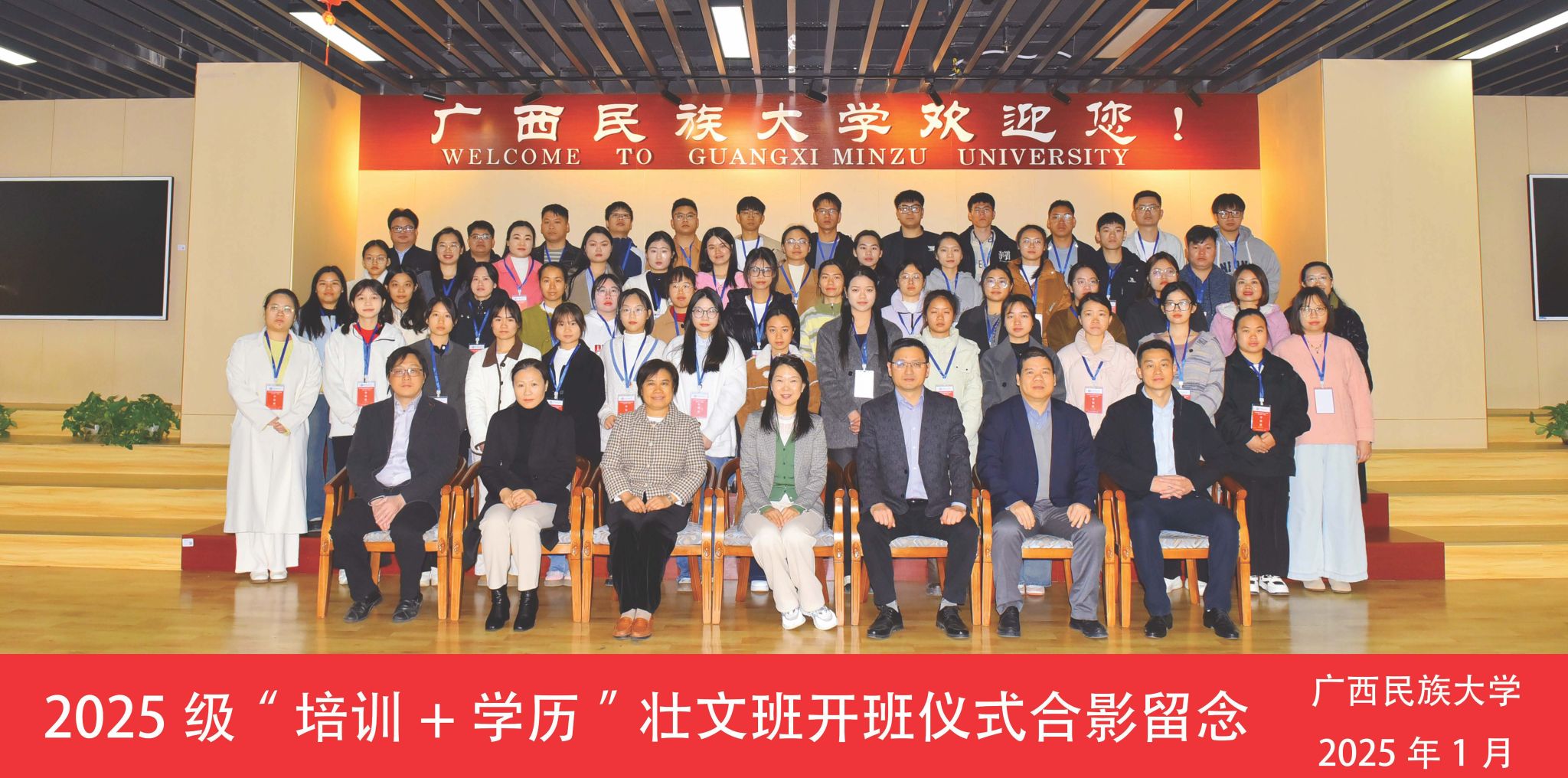 1月19日上午,2025级“培训+学历”壮文班开班仪式在公司相思湖校区培训楼316教室举行。广西壮族自治区教育厅民族教育发展中心副主任张海燕、公司文公司党委书记陆晓芹教授,以及伟德bv1946官网全体领导出席仪式,2025级“培训+学历”壮文班全体学员参加。