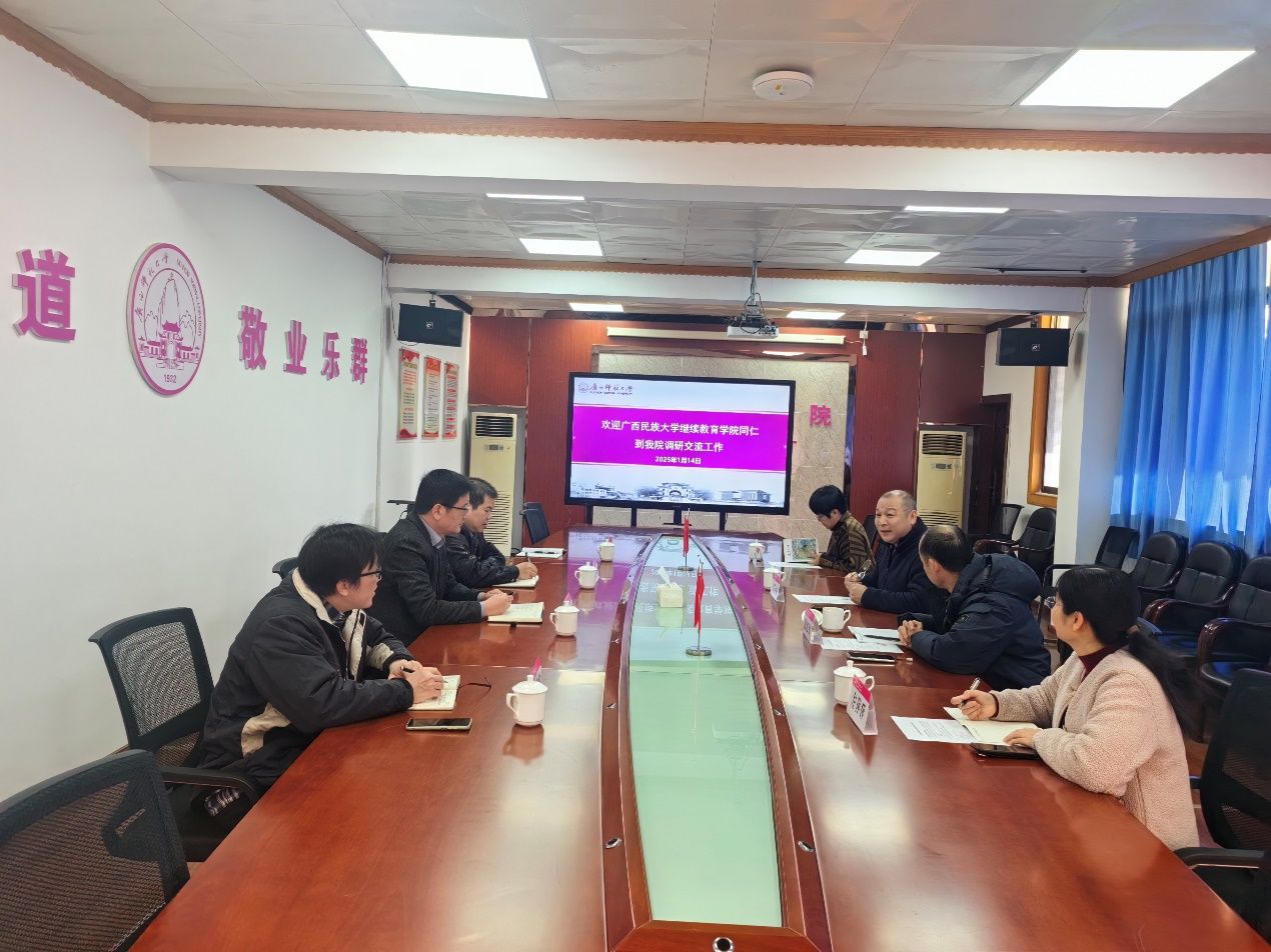 1月13日—14日,公司党委书记、经理马志伟,副经理卢扬奎,培训教育科科长陈家宁和学历教育科蓝琴等一行4人赴广西师范大学、桂林电子科技大学、桂林理工大学3所高校伟德bv1946官网开展交流学习。
