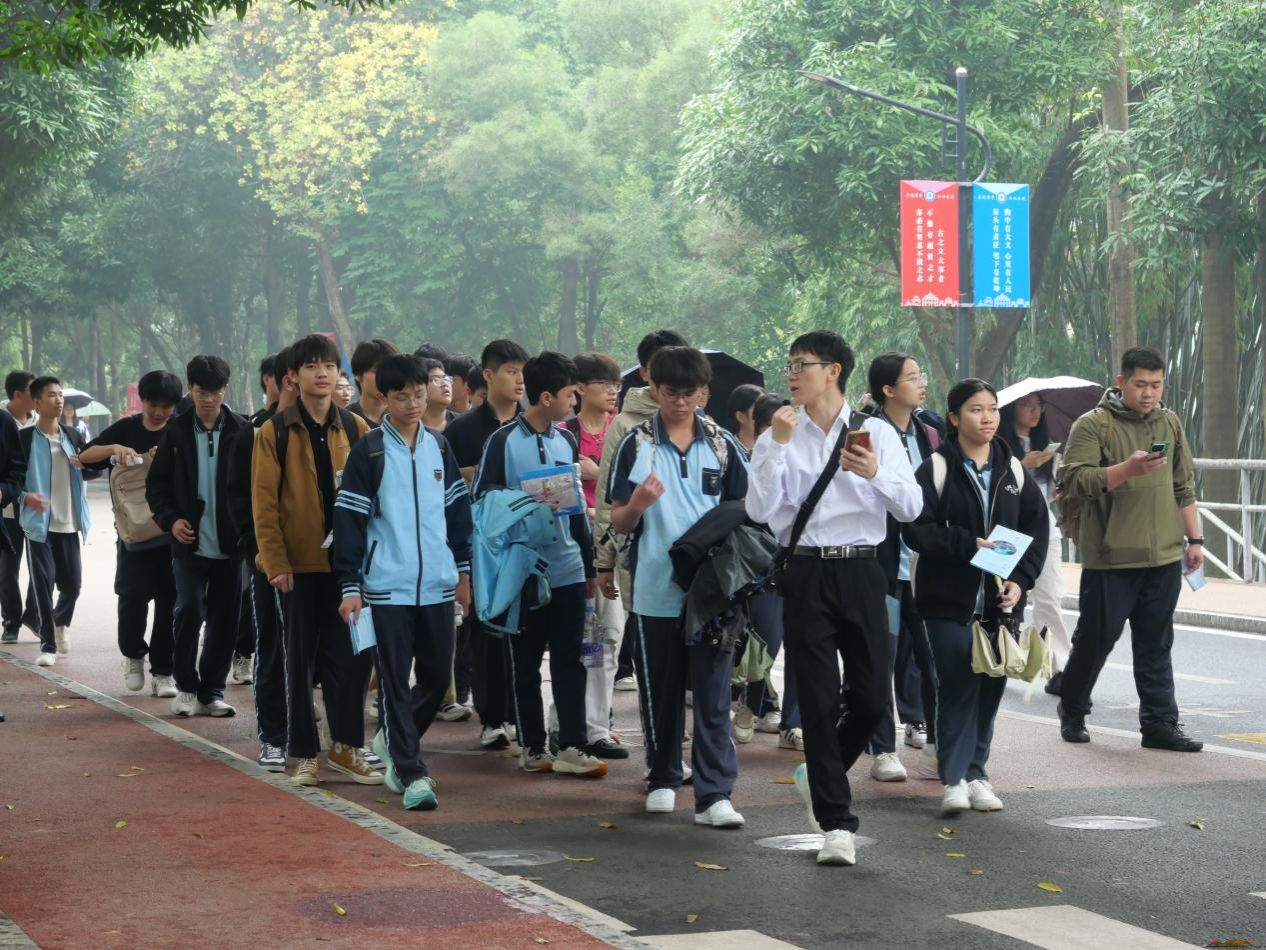 上午,同学们在讲解员的带领下,漫步于风景如画的相思湖畔。湖光潋滟,绿树成荫,校园中浓厚的学习氛围与人文气息深深吸引了同学们。虽然下着小雨,但同学们依然热情不减。他们边走边听,不仅感受了大公司园的独特魅力,也对老员工活有了更直观的憧憬。
