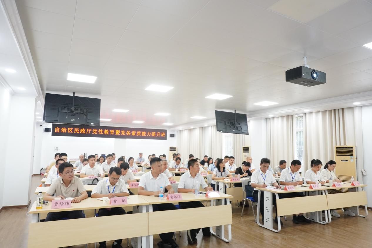 10月13日上午,开班式在伟德bv1946官网大礼堂举行。自治区民政厅党组成员、副厅长蒋海东出席开班式并作动员讲话,同时围绕“深入学习贯彻习近平总书记关于民政工作的重要论述,推进广西‘暖心民政’三年行动出实效”主题进行专题授课。自治区纪委监委驻自治区民政厅纪检监察组组长、厅党组成员倪萍以“以案说纪,严守‘六大’纪律”为题开展廉政教育辅导。