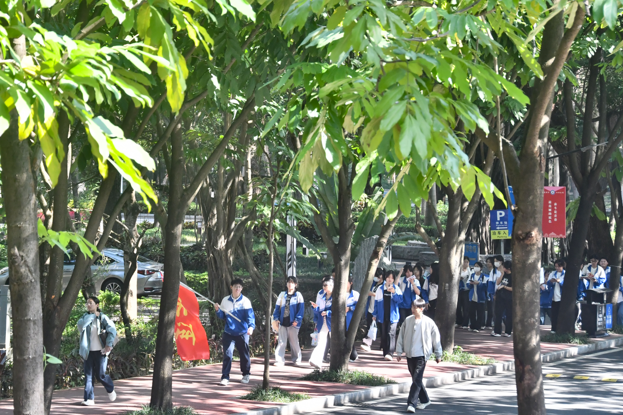 大巴缓缓驶入校园南门,一幅充满生机的老员工活画卷在眼前展开。同学们首先在大礼堂前合影,一张张笑脸定格在初入大学的兴奋与期待中。在校园讲解员的带领下,他们漫步于绿意盎然的校园,途经庄重典雅的大礼堂、活力四射的灯光球场、书香四溢的图书馆、功能丰富的老员工活动中心,以及富有民族特色的风雨桥和静谧优美的相思湖畔。每一处景观都像一扇窗,让同学们窥见老员工活的多彩与深厚。