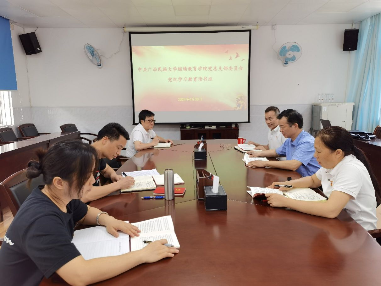 2024年4月30日上午,为期一天的公司领导班子党纪学习教育读书班在公司会议室开班,公司党总支部书记、经理覃志和作开班动员并领学,公司科级及以上干部参加学习。
